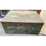 A large very solid Victorian OAK TRUNK currently painted green came from the famous KINLOCH CASTLE MECHANICS WORKSHOP on the Isle of Rum
