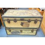 Two 1950s STEAMER TRUNKS to include original Peninsular and Oriental Steam Navigation Company labels, could be converted to a trendy coffee table with the addition of safety glass