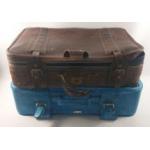 Two old style suitcases, the first a quality item by ANTLER in light blue, the second more suitable for storage