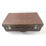 A small VINTAGE brown leather suitcase with initials MF McC