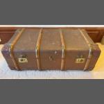 WOULD MAKE A TALKING POINT COFFEE TABLE!! Vintage c1910 trunk with bentwood strapping