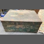 A large very solid Victorian OAK TRUNK currently painted green came from the famous KINLOCH CASTLE MECHANICS WORKSHOP on the Isle of Rum
