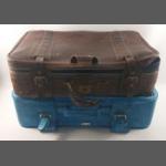 Two old style suitcases, the first a quality item by ANTLER in light blue, the second more suitable for storage