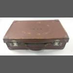 A small VINTAGE brown leather suitcase with initials MF McC