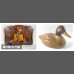 A vintage hand-carved MALLARD DUCK decoy, approx 30cm long and an unusual vintage hand-made wall-mounted newspaper rack approx 30x25cm
