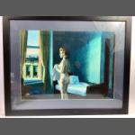 A large print of 'Hotel Room' by EDWARD HOPPER frame measures 88x88cm, visible work measures 56x 56cm
