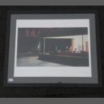A print of EDWARD HOOPER'S Night Hawks, frame measures 89x74cm approx, visible work measures 67x37cm approx