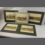 Five interesting modern GOLFING PRINTS after SMART RSA. To include Glasgow Alexandra Park, Leith Links, Lanark, Troon, Carnoustie. Beautifully coloured, very attractive and nicely mounted ready for framing, 29 x 23cm approx actually image.