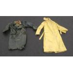 Two pairs of 70 year old 'oil-skins' makers VINCO27 made in Scotland medium sized - one in olive colours and one in mustard colour