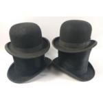 Two BOWLER hats and two TOP hats by various makers each of the hats has some small amount of damage