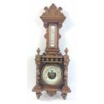 A vintage BAROMETER and THERMOMETER set in an ornately carved oak frame 56cm long