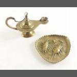 Super brass items. An ALADDIN style small oil lamp candle burner. and a brass trinket tray with unusual scarab like Beetle design.