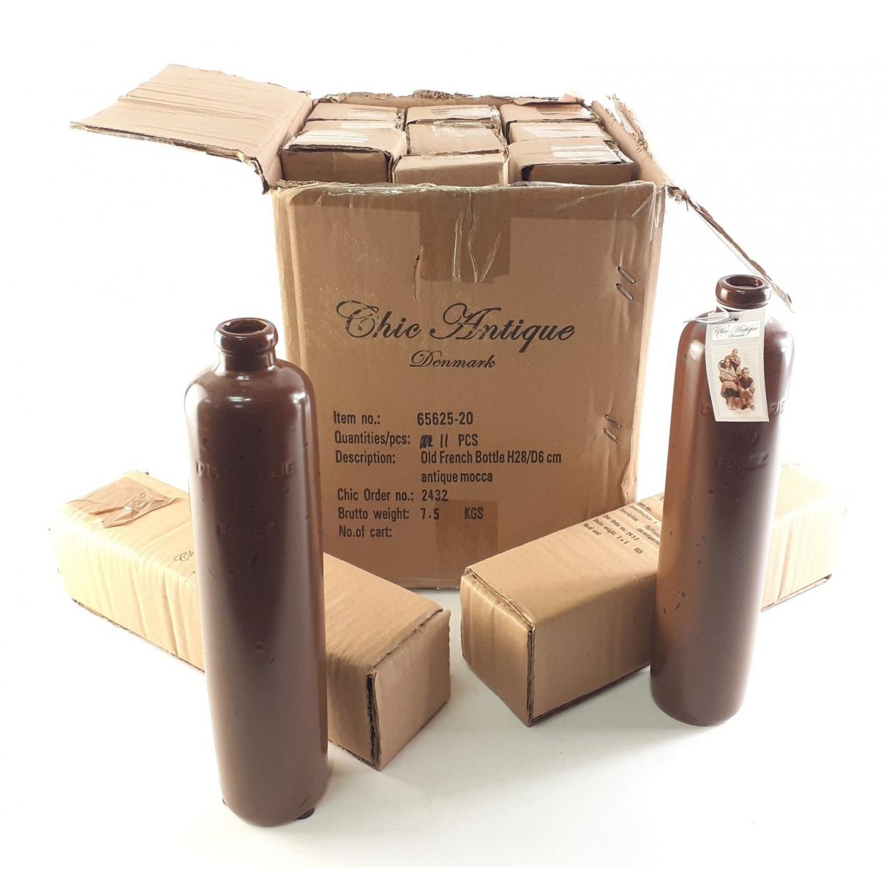 A box containing 11 CHIC ANTIQUES 'Old French Bottles' all in original packaging. Each 29cm approx