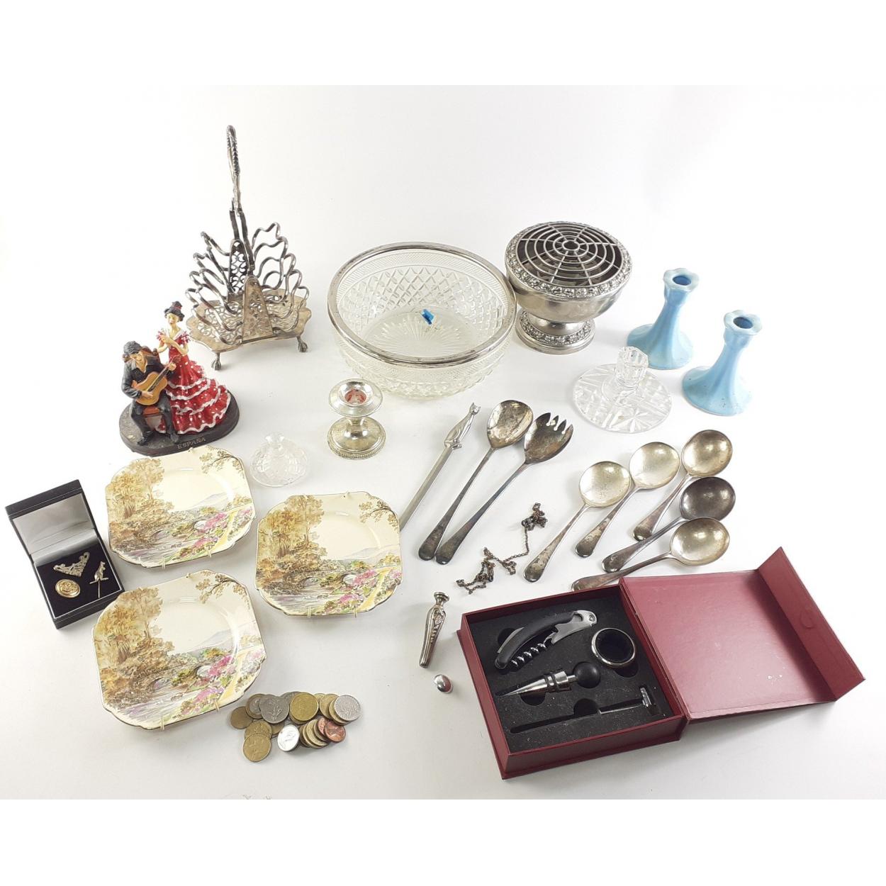 Mixed lot to include ceramics, silver plate, coins, ornaments etc.