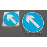 Two keep left/right signs, one metal sign other mounted on hard plastic. Largest is 87cm tall approx