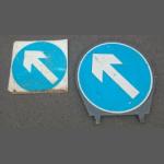 Two keep left/right signs, one metal sign other mounted on hard plastic. Largest is 87cm tall approx