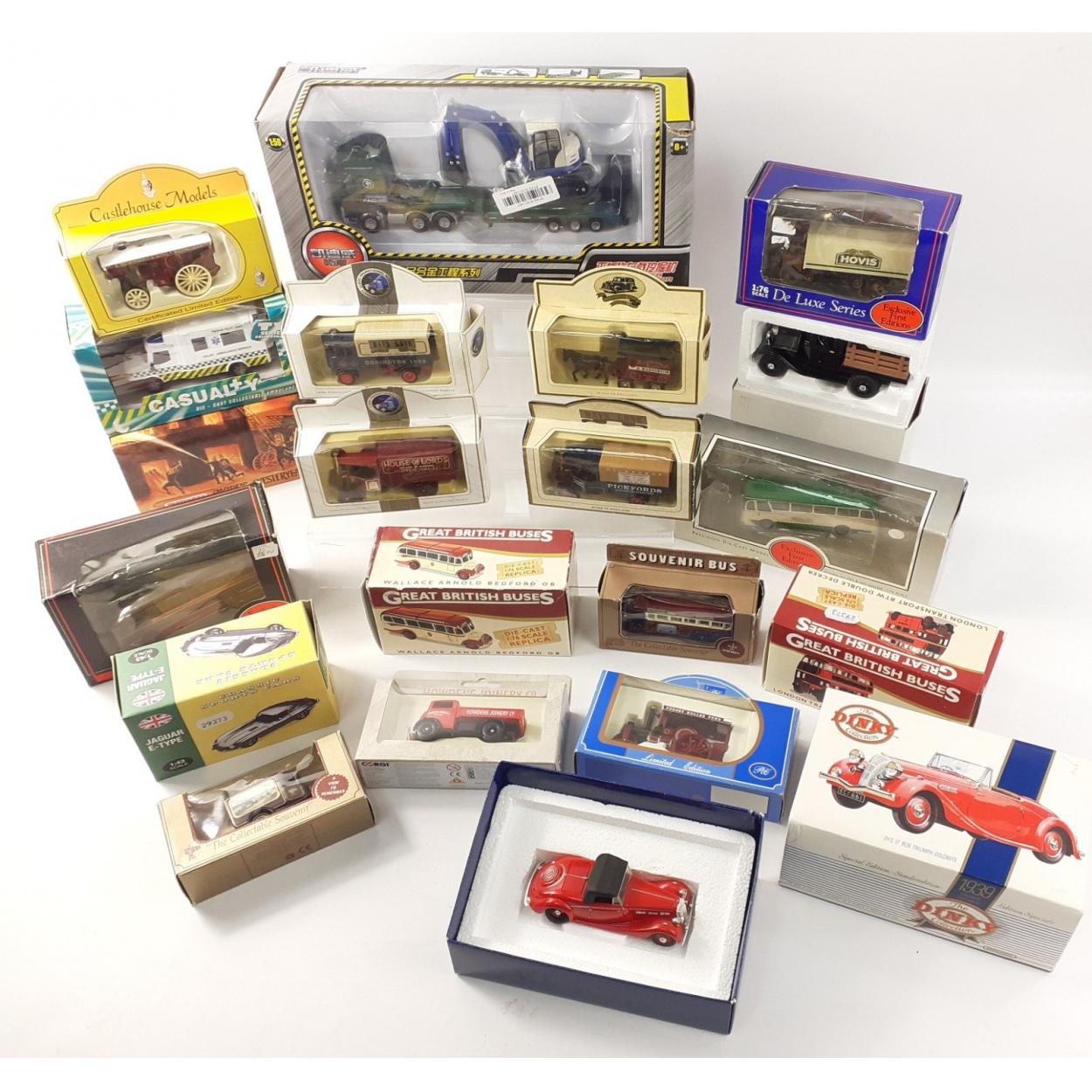 A super diecast collection of models to include DINKY DYS17 Triumph Dolomite, ATLAS editions Great British Buses, 2 EFE models, an ATLAS 143 Jaguar, and others
