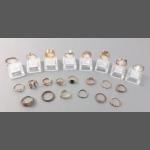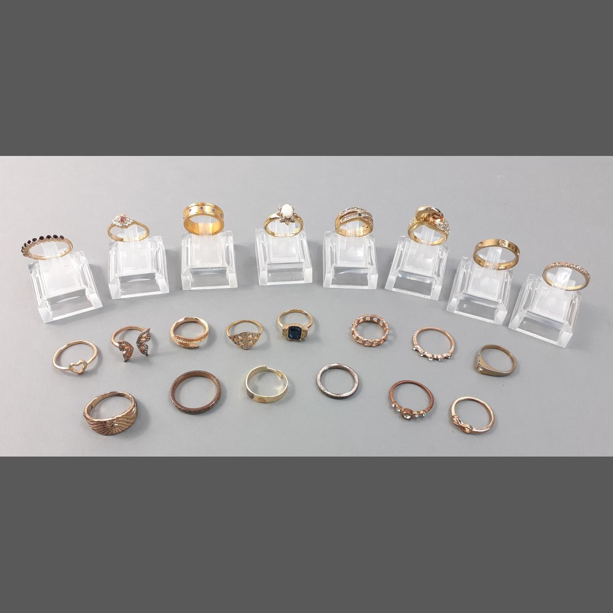 Two 18ct plated rings one set with a ruby (size S), the other with a topaz also size S.