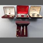 A small collection of tiepins and cufflinks including some with a bowling theme
