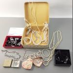 Top quality costume jewellery within a zip up jewellery box including faux pearls