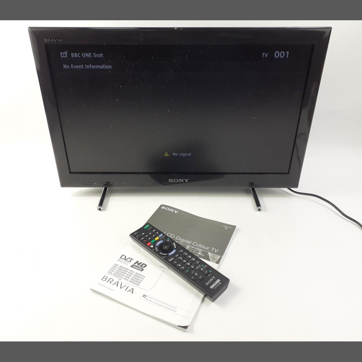 A Sony KDL-22EX553 flat screen digital TV with mains cable and remote control.