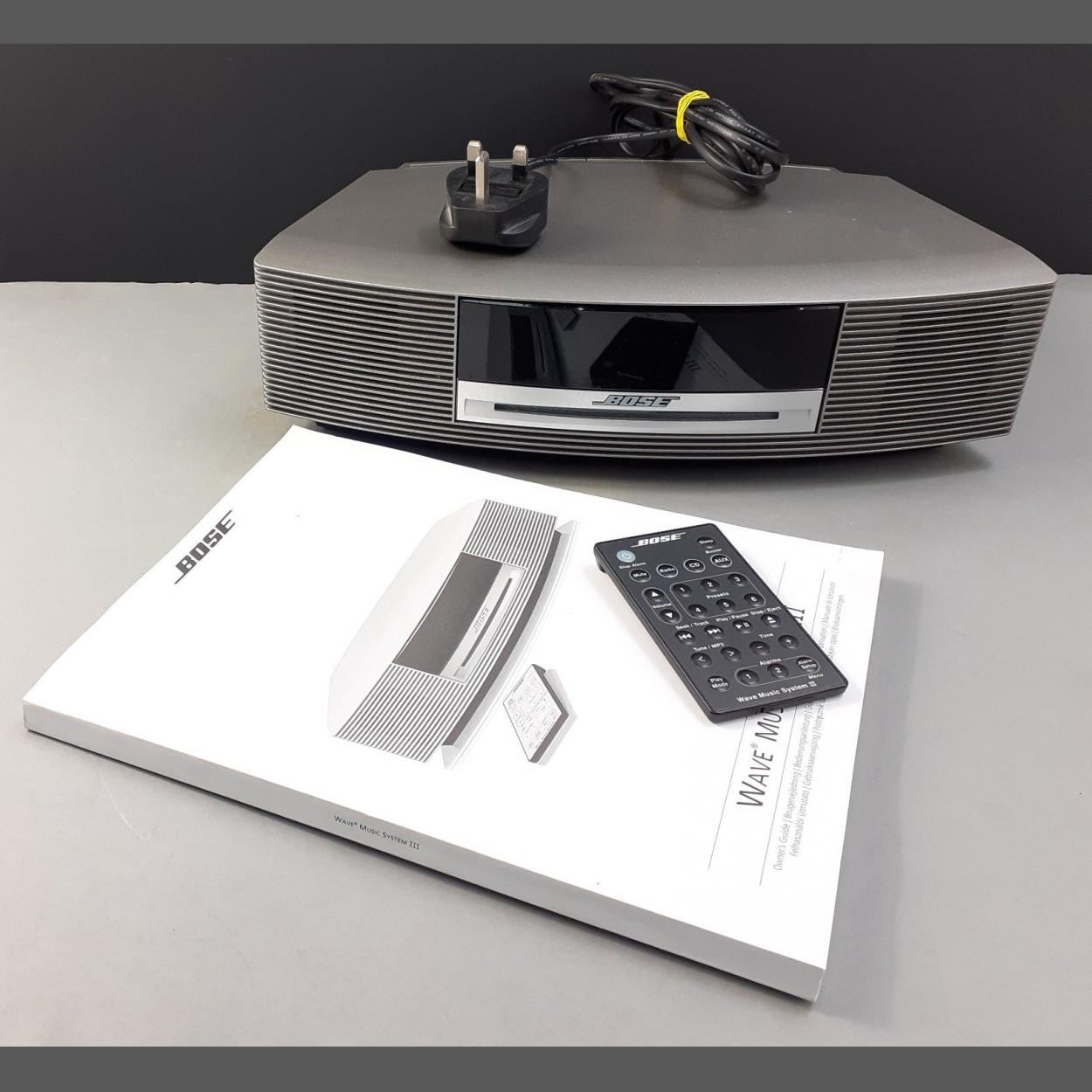 A BOSE Model Wave Music System 3 complete with remote control and mains cable. A very upmarket, quality system. With instruction manual.