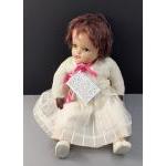 VINTAGE! ROSEBUD - a plaster headed doll with an interesting travel history attached. She stands approx 50cm tall and does have some cracks to her face - the origins of which are attached to her travel note.