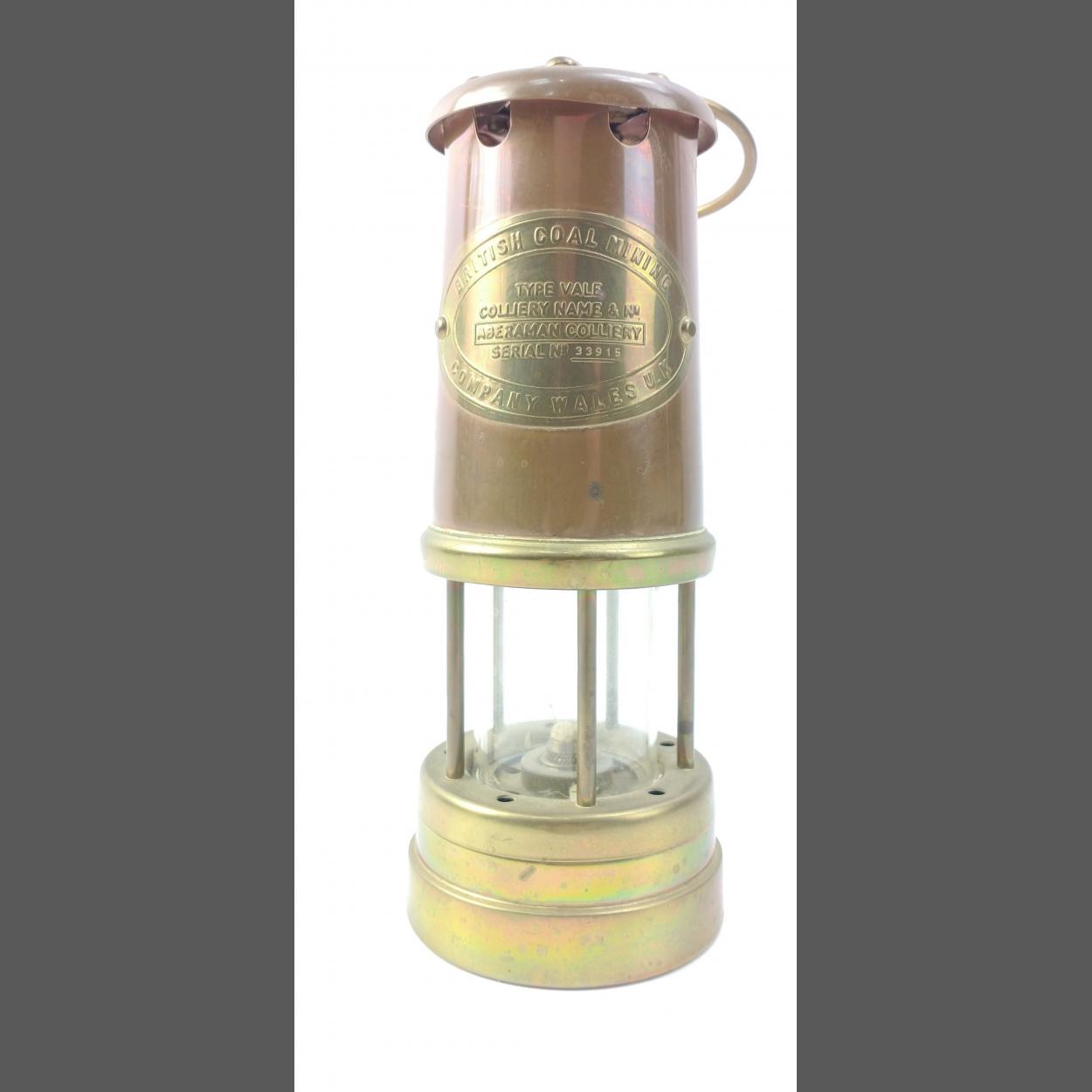 A BRITISH COAL MINING COMPANY WALES UK, paraffin miner's lamp from the ABERAMAN COLLIERY, serial no. 33915. Stands 22cm high approx, excellent condition