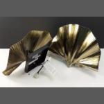 Two unused brass coloured metal clam shell-shaped wall light fittings W38cm x H 28cm approx