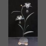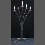 A stylish burgundy metal leaf design candle stand with 4 glass candle holders, stands 94cm tall approx