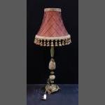 A tall and highly ornate brass and onyx table lamp - lovely condition - standing 87cm tall to the shade approx.