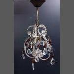 A small antique chandelier with glass beads and red stones, 50cm high approx