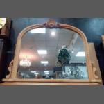 A large arched hand-carved OVERMANTLE MIRROR with floral detail W132xH95cm tall approx