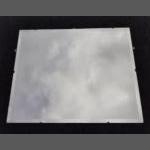 An unframed antique rectangular bevelled mirror with oak backing L72xW59cm approx