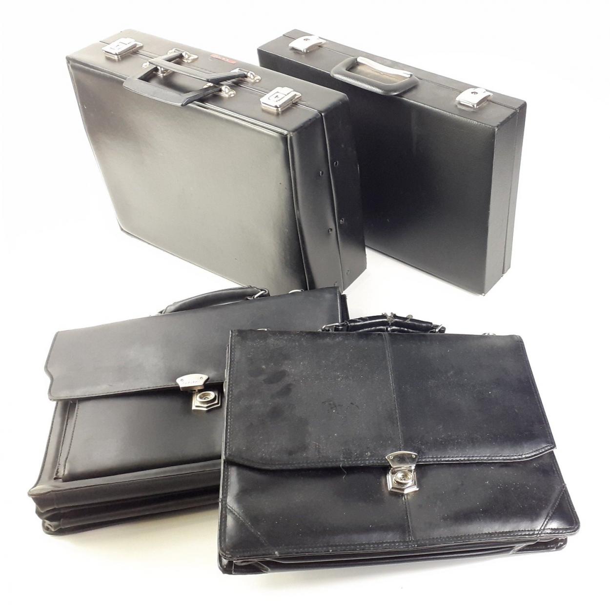Two leather briefcases plus 2 laptop bags. In useful condition