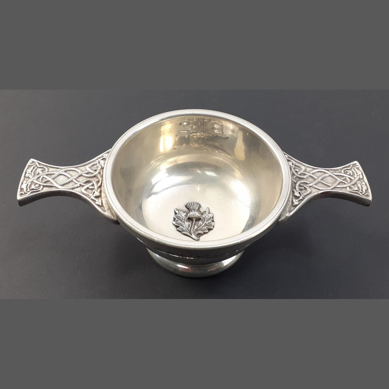 A small CULFONTA pewter quaich with a thistle motif 7cm dia