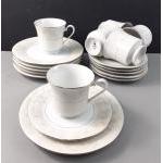 A modern CROWN MING fine China tea service comprising six each of side plates, cups and saucers. A pretty and classy set with all pieces in good order.