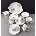 A SHELLEY fine bone china tea set in Sycamore 14100 pattern comprising sandwich plate, sugar and cream, and 6 each of cups, saucers and side plates. All in excellent condition