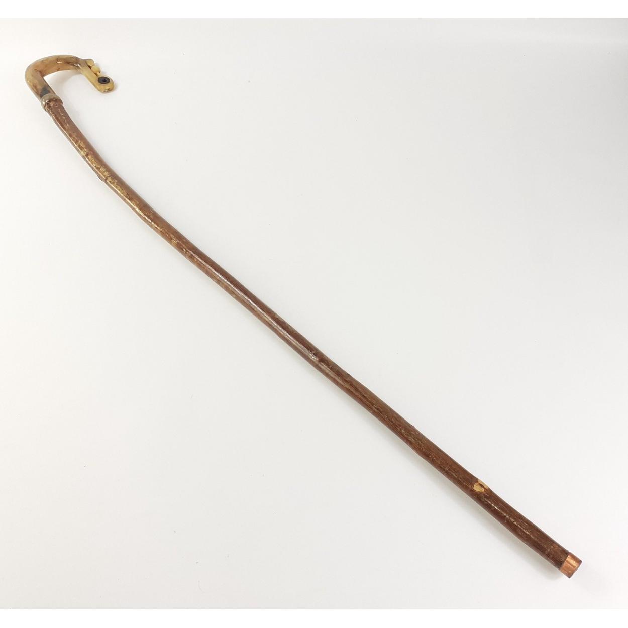 A horn handled shepherd's crook with carved thistle motif handle. 110cm long.