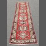 A beautiful hand knotted Afghan Kazak runner carpet, colour tones of red, turquoise, cobalt blue, beige and light blue, 294 cm long x 81cm wide approximately.