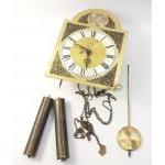 A SCHATZ brass clock mechanism with pendulum and weights, clock face 20cm dia. A very attractive well-made piece designed for wall hanging