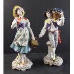 A SITZENDORF grape seller (V20787) standing 21cm tall approx plus a girl with flower basket (V20788). No damage to either figure.