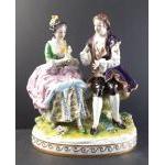 A well-modelled figurine of a musical couple. No maker's mark. Figure stands 25cm approx.