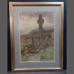 JOSEPH DENOVAN ADAM R.S.A., R.S.W (1842-1896) framed large watercolour 'Shepherd and flock at a stone Celtic cross' signed bottom right hand corner and dated 1885