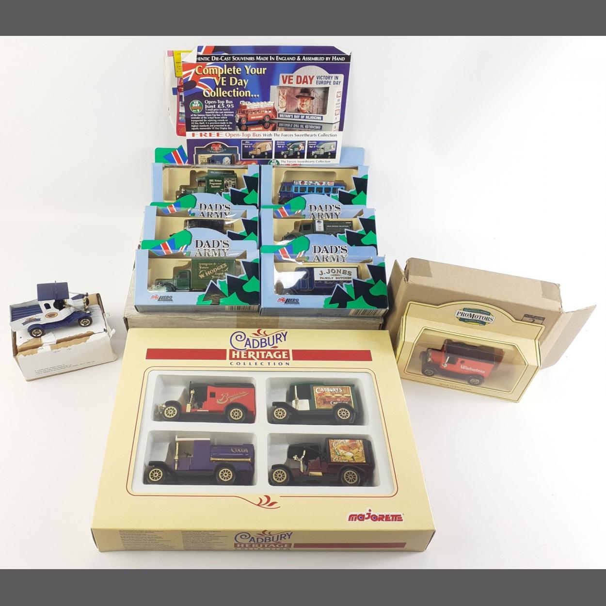 Nice modern small diecast car / vehicle collection. Six LLEDO Dads Army models boxed, Cadburys Heritage collection advertising vans in box and two others.
