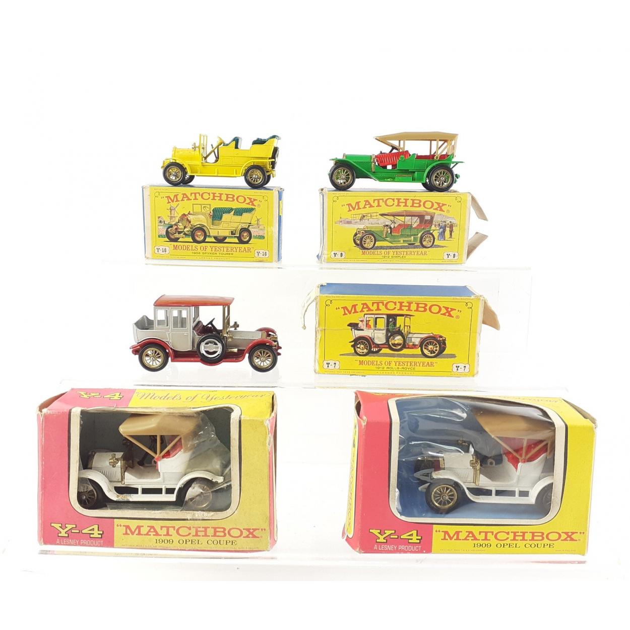 Collection of MATCHBOX cars to include Y4, Y7, Y9 and Y16. Boxes in worn condition