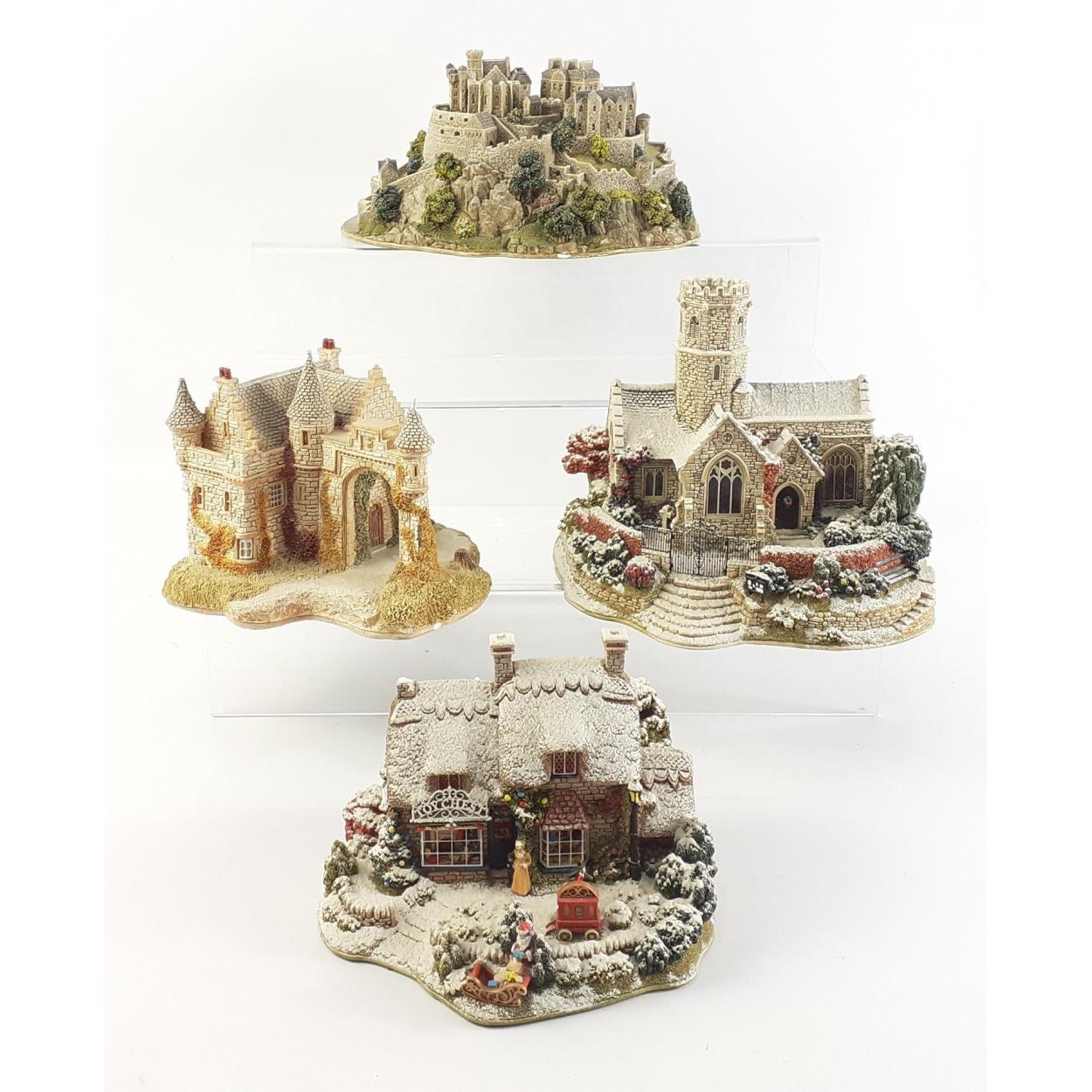 A collection of four LILLIPUT LANE models to include Glenlockie Lodge, Edinburgh Castle, The Christmas Eve Present and a musical Lead Kindly Light in Winter. All with slight damage.