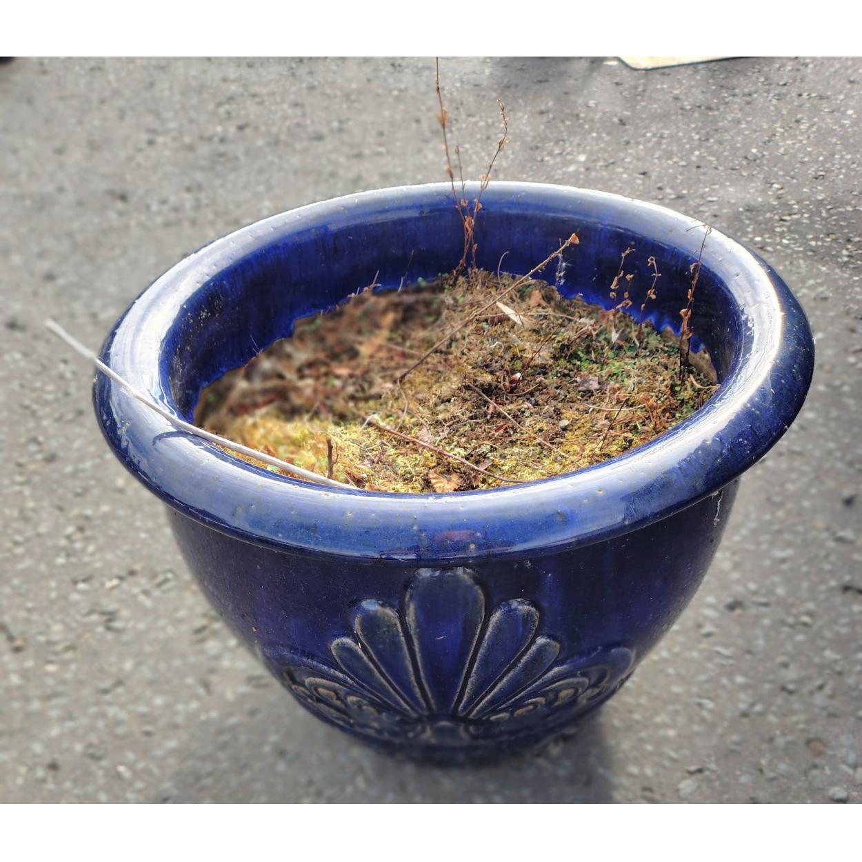 CERAMIC blue garden container (including weeds!) - diameter 45cm x height 30cm approx
