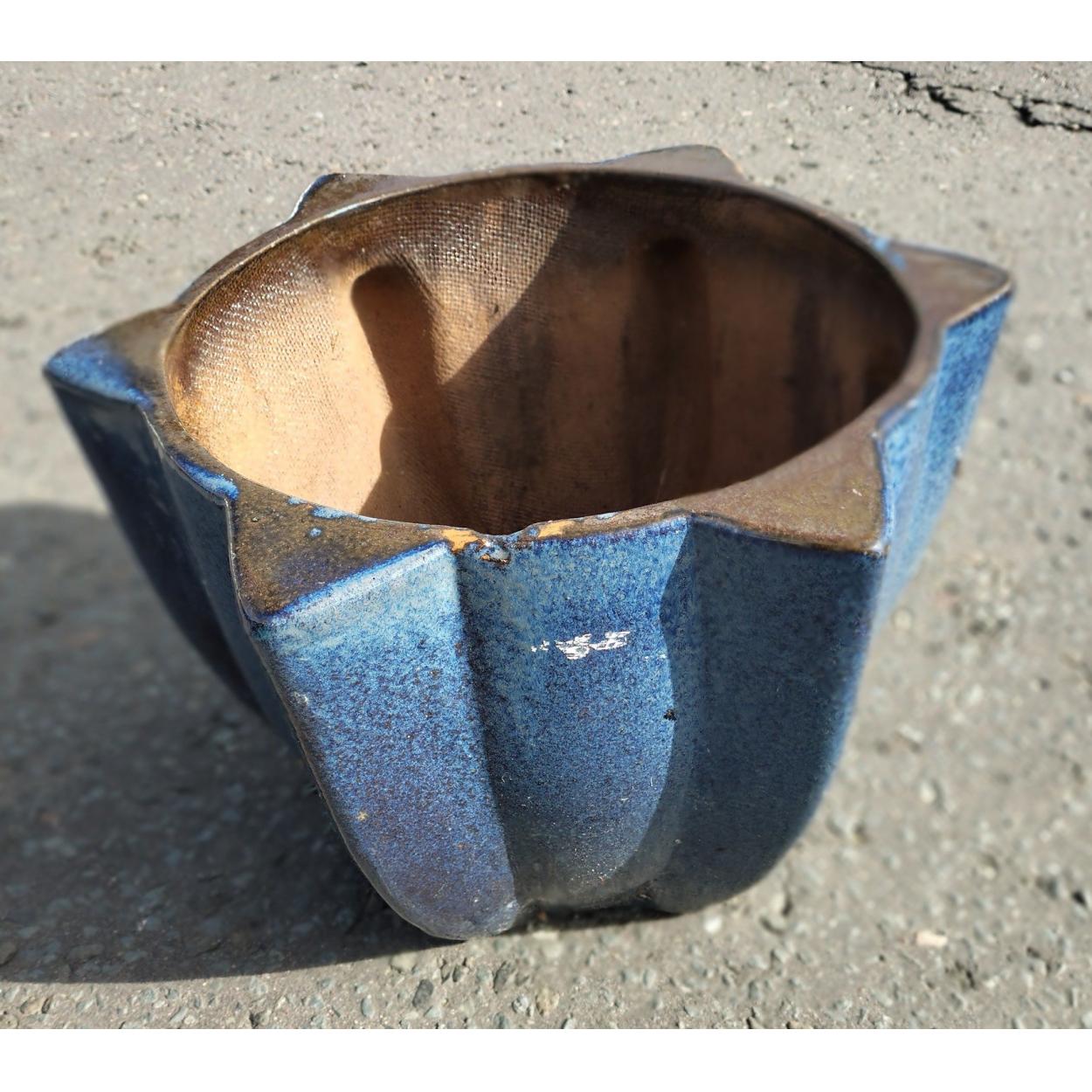 UNUSUAL CERAMIC blue glazed star shaped garden container - 45cm square x height 33cm approx - a BIG POT!