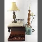 NICE QUALITY! A decorative lot to include a handy footstool, two lamps and others.